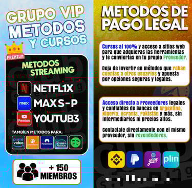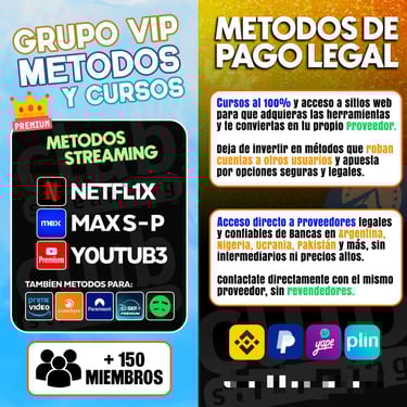 Ofrecemos métodos de pago legales y seguros para que accedas a plataformas de streaming sin preocupaciones. 💳🎬